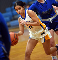 McKinney Lionette Kennedy Wilson (3) heads to the hoop. (photo by Lockard Koval/BuzzPhotos.com)