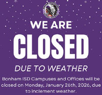 Bonham ISD will be closed again on Friday, January 30.