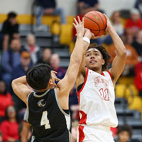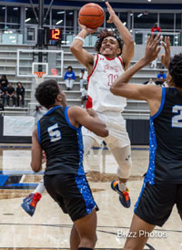 Broncos senior Miles Morgan (#11) shoots to take the lead with 2 minutes left in the game. (photo by Buzz Cory / BuzzPhotos.com)