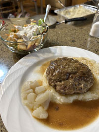 Luke enjoyed this dish of ground oryx hamburger steak prepared by Nacolh Vickrey at the Choctaw Hunting Lodge in southeast Oklahoma last week. Hands down, this is one of Luke’s favorite meals. (photo by Larry Weishuhn)