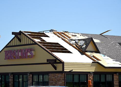 Damaged roof at Braums on Hwy. 121 North.