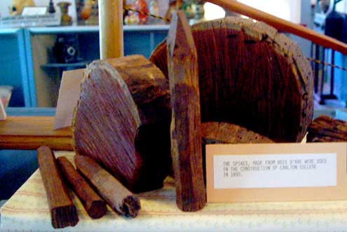 Many homes in this area rest on bois d' arc blocks like this one from the birthplace of Charlie Christian. When bois d' arc is alive, it cuts and splits relatively easily. Once bois d' arc ages, it becomes so hard a chainsaw blade can throw sparks when it hits the dense wood.