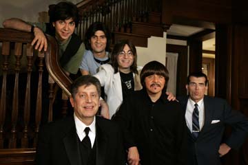 | Stephen Young, executive director of LeukemiaTexas, with the Fab Four and an Ed Sullivan impersonator. |