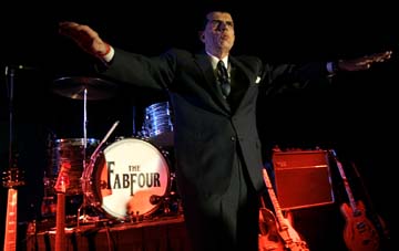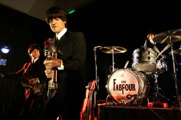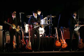 I was also skeptical of the band's claim: "The Fab Four – The Ultimate Tribute to The Beatles." Okay, to be fair, if you look up the word "cynic" in the dictionary, you’ll find a picture of me. But, I soon discovered that these guys don't just cover Beatles songs; they do three costume changes during the show to reflect the different periods of Beatles music. They bob their heads and flop their mops as only the original Fab Four did The Fab Four are: Ron McNeil as John Lennon; Ardy Sarraf as Paul McCartney; Michael Amador as George Harrison; and Rolo Sandoval as Ringo Starr. Sarraf even plays left-handed bass like McCartney. He also plays piano like Paul did on songs like “Let it Be” and “Hey, Jude.” You can check the Fab Four out, including audio and video clips, at www.thefabfour.com.