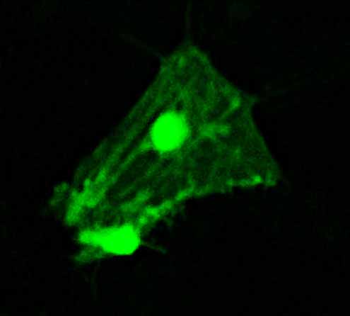 LIVING ART - This image captured by a confocal microscope shows some of the processes of two neurons in a living tadpole brain.