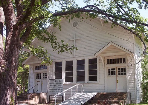 According to a history of St. Paul C.M.E. church written by church members, its first building, apparently built sometime in the late 1860s, was located in the same general area as Bradford Chapel, the southwest corner of Bonham known as Tanktown (because many railroad tanks were located in that area.) “The former slaves,” according to the history, “had difficulty erecting their first building. Men and women . . . worked together to make a humble log structure with a dirt floor.”