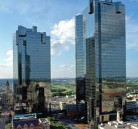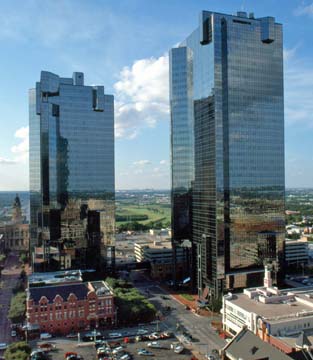 When the towers were under construction and the adjacent turn-of-the-century building of Sundance Square under restoration, the two projects were locally dubbed “Sundance and Star Wars.”