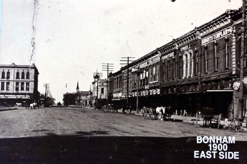 Steger most likely disembarked at the railroad depot, the center of travel in 1902 and perfectly preserved today as the Fannin County Museum of History. If Steger traveled up Center Street, the buildings on the east side of the Bonham Square looked very similar to the way they appear today.