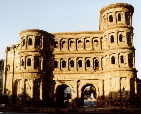 "There are old Roman baths, the old palace where the Roman Emperor Constantino lived at different times, old Roman streets still in use," Steger wrote to his parents. "The Roman bridge across the Mosel, even 'till today the bridge most used in that vicinity; the Trier city library, where old books, richly illustrated by hand, years and years before printing was known, books whose marvelously colored pictures still retain their brilliance and clearness; manuscripts, with signatures of Martin Luther, of Goethe, of Schiller, of Calvin. I studied hard in Trier, for I had my first opportunity there of seeing a really considerable mass of Roman antiquities. Trier, by the way, is, according to indisputable evidence, some 1,300 years older than Rome. The Porta Nigra, an entrance the Romans built about 50 A.D., still stands, an enormous gateway."