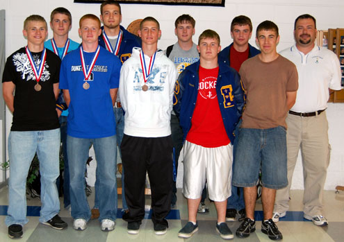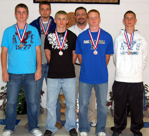 District 13-2A Bronze Medalists Matt Williams, Tyler Pannkuk, Jake Buchanan, Coach Greg Connelly, Aaron Moreland and Trent Borchardt