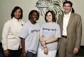 | Cheryl Brown, Coca-Cola North America; with East Dallas Club members Apolonia Rincon and Jazmin Seals with John Oehlke, Coca-Cola North America |