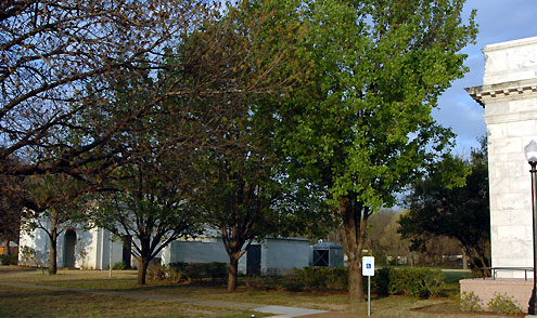 The master plan calls for replacing the original circle drive that once allowed visitors to be dropped off at the front door of the library, in addition to redesigning the front plaza so that nothing except the statue of Speaker Rayburn and two flagpoles are visible on the front lawn.