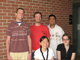 Five Ohio State graduate students are finalists in a product development competition co-sponsored by Disney Consumer Products and will take their idea for "Buzz Lightyear's Star Command Snacks" to the annual meeting of the Institute of Food Technologists in Anaheim in early June. Team members are, standing, Andrew Wassinger, Joe Jones, Gerald Sigua, and sitting, Setsuko Kamotani and Jennifer Perry.