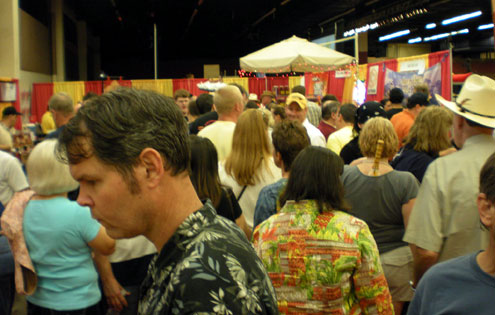 We presumed that with all the rain there wouldn’t be that many people out and about. Boy, howdy, were we wrong! Not only was ZestFest 2009 happening, there was a Fort Worth Stock Show Equestrian event in the grounds just down the street from ZestFest, as well as a weekend flea market across the street and a children’s event right next door in the same building as ZestFest. And the North Texas Tea Party Express was going strong in nearby downtown.