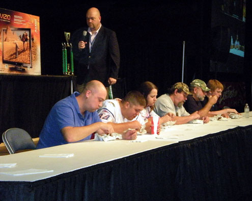 When we arrived at ZestFest 2009, they were just about to start the first preliminary round of the chicken wing eat-a-thon contest. The winner from each round had to compete in the final round. Since only 6 contestants were in each preliminary round, this first stage of competition lasted quite a while.
