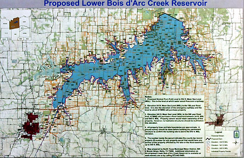 "Without a doubt, it will back up," Glaser says. There has never been an impoundment that improves drainage upstream. "Flood control improvements will be limited to below the proposed reservoir."