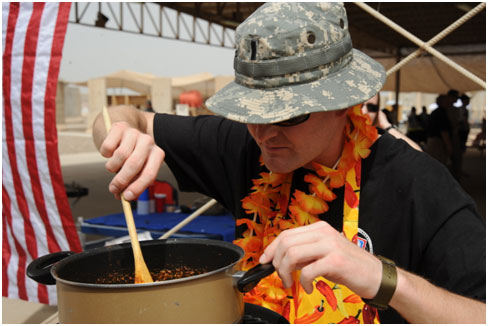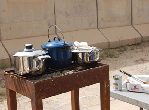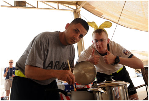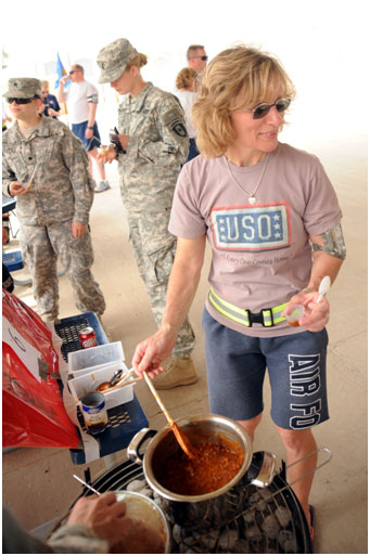 After meat and spices, Ken said they realized “Military people going into an area of military conflict do not carry items necessary to cook chili! Something that we did know we needed were pots to cook chili in – again not readily available in