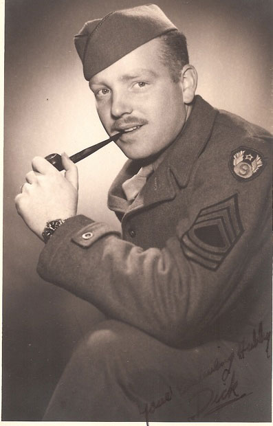He was young and handsome--or at least I think so and so must have my mother. Through his military photos I can see him change from a young fresh-faced 18-year-old who joined the Army Air Corps right out of high school to a seasoned Master Sergeant five years later. He and his crew of airplane mechanics followed Patton across Europe, fixing downed planes, flying them back behind the lines. They weathered the Battle of the Bulge by covering their crew truck with a tarp and getting under a bridge, letting snow bury them as German soldiers marched overhead.