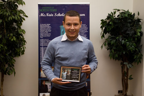 Wall is also a student in the Ronald E. McNair Post-baccalaureate Achievement Program, a federally funded program that prepares undergraduate students who are the first in their families to attend college, are from economically marginalized families or are members of groups that are traditionally underrepresented in graduate education to pursue doctoral study. McNair Scholars are paired with UNT faculty mentors to conduct research. The students often present their research findings at professional conferences. They also undergo intense preparation for graduate school.