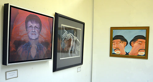 Alter Ego Exhibit in the Peanut Gallery - (L-R) Always With Me by Jeanne Sturdevant, Rapture Goddess by Jeanne Sturdevant, and One is the Same by L.B. Sutherland