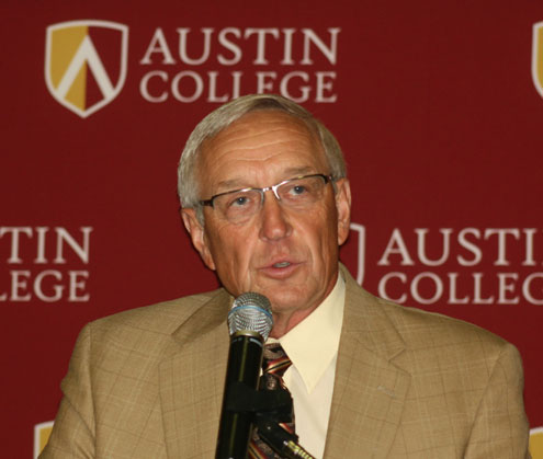 The coach has been back at Austin College many times over the intervening years, including a stop for the Legends athletics award event last summer when he received the College’s 2010 Coach Joe Spencer Award for Lifetime Achievement and Meritorious Service in Coaching.