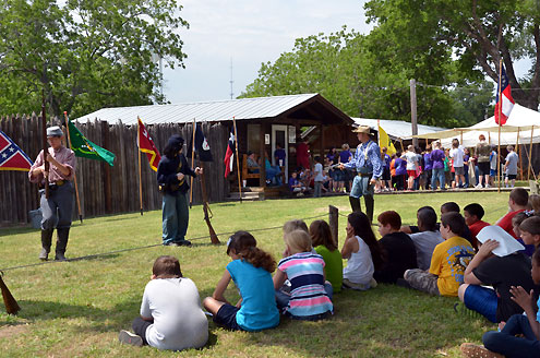 Some area school children got a jump in Heritage Day in Bonham by witnessing a living history exhibit Friday at Fort Inglish.
