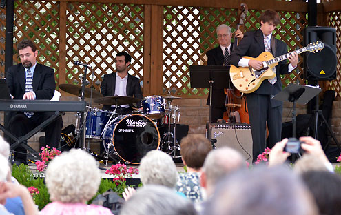 Bonham -- With the garden at Creative Arts Center transformed into a jazz club for the evening, a large crowd settled in to enjoy the first-ever live performance of the music of Charlie Christian in Bonham, Texas, the town where the Rock and Roll Hall of Fame jazz guitarist was born in 1916 and buried in 1942.