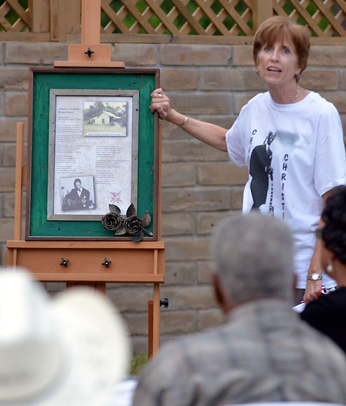 The life story of Charlie Christian was just as important as the music and Oklahoma City resident Anita Arnold, probably the leading authority on Christian and the "Deep Deuce" music scene that launched Christian's career, made the trip to Bonham to narrate the event. Arnold was a member of the John F. Kennedy Center for the Performing Arts Advisory Committee for three years and she has authored three cultural history books detailing the Oklahoma City Music scene during the time Christian was building a regional reputation as well as Christian's two years with Benny Goodman.