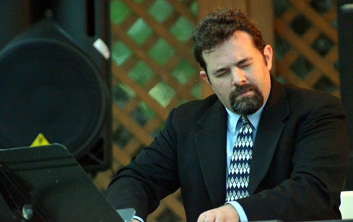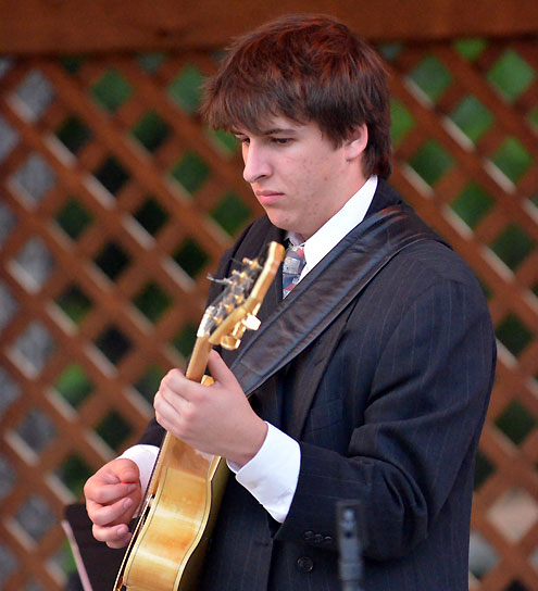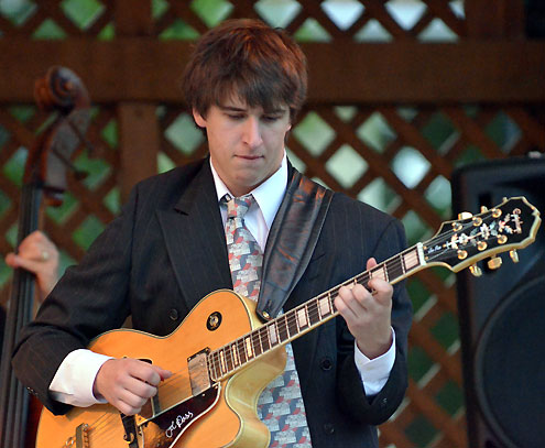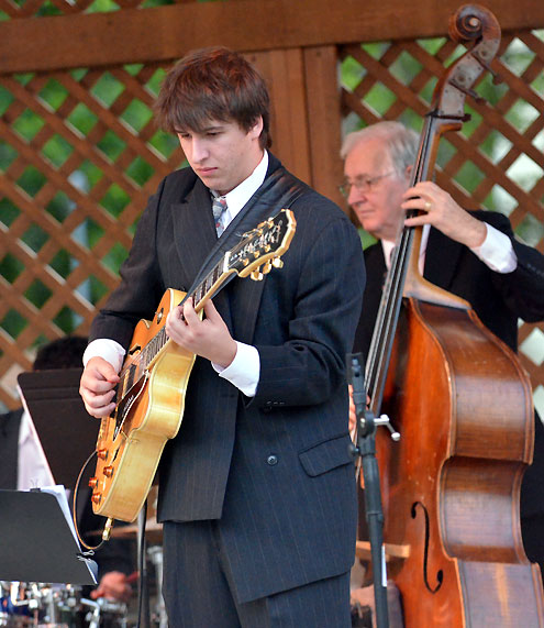 An impressive jazz combo consisting of pianist James Dering, drummer Jason Dering, bassist Darryle Dering and Randy McBroom on trumpet provided the soundtrack for an historical evening, but on a night like this the spotlight had to be focused squarely on the guitarist. University of North Texas jazz guitarist Michael Tuck played the part of Rock and Roll Hall of Fame jazz guitarist Charlie Christian.