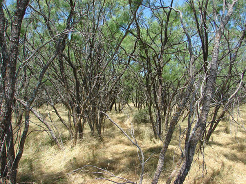 Mesquite thickets like this one grow on about 60 million acres in Texas and could be a potential biofuel source. (Texas AgriLife Research photo by Dr. Jim Ansley)