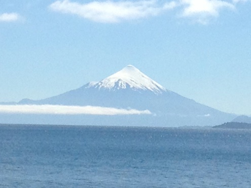 Puerto Montt. Seems no one could agree on an excursion so our little group went on three different ones. I took the culinary route, visiting a local market and then going to a restaurant to cook our meal. I found this to be great fun and ate some members of the seafood category I usually shun, like clams and mussels. This region is known for its volcanoes, and one near the town of Puerto Varas was so unreal in its appearance as to make us think the visitor’s bureau would put it up and take it down, dependent on the number of tourists in the area.