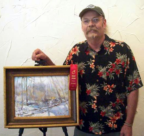 Means began painting seriously in 1986, after moving to Bonham. Though probably most often associated with watercolor landscapes, he has recently discovered the versatility of acrylic and enjoys portraiture and the challenge of likeness.
