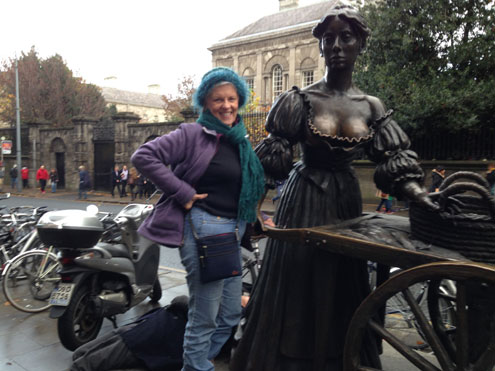 The statue of Molly has been colloquially called “Dish with a Fish,” “Tart with a cart,” “The Flirt in the Skirt” and “The Dolly with a Trolley.” As you can see in the photo, Molly’s statue is taller than I. Otherwise…