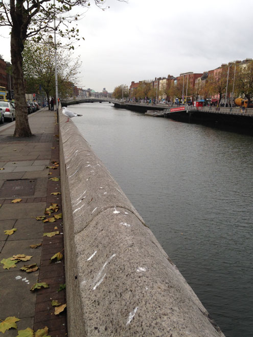 There are lots of bridges along the Liffey, such as the Ha'penny Bridge, so called because it used to cost half a penny to cross it.I figure that River Liffey will wear a covering of green-tinted foam on St. Patrick’s Day.