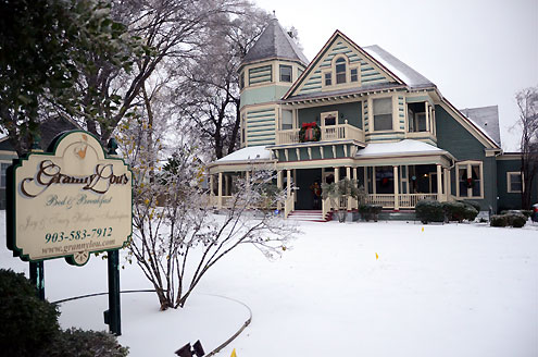 Granny Lou's (http://www.grannylou.com/) was decked in holiday splendor as Bonham Area Chamber of Commerce celebrated Self's new business venture with a ribbon cutting and Bonham Mayor Roy Floyd said the future prosperity of Bonham is inexplicably tied to this sprawling three-story historic bed & breakfast.