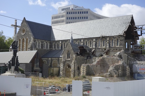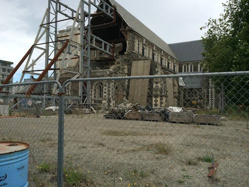Although three-quarters of New Zealand’s population of 4.5 million live on the North Island where it is warmer and more geographically hospitable, the South Island is larger. Not only is the manpower not in evidence to quickly put Christchurch back together again, but the city government, building/land owners, and insurance companies have not yet come to a mutual vision for the city. A case in point is the Christchurch Cathedral.