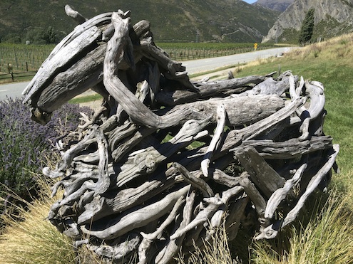 It was windy and cool when we began our tour into the surrounding mountains and Central Otago wine region. Here, so much further south than the North Island and even the Marlborough region, the grapes were tiny by comparison. We started at Gibbston Valley Wines, one of the first boutique wineries in the region. Here, blasted out of the solid schist, is the wine cave, making an ideal temperature environment in which to mature the wines. Founder Alan Brady wasn’t discouraged from developing a vineyard where it hadn’t been done before and in 1987 produced the first commercial wine from the area. We fell in love with the Riesling, much dryer than the German version.