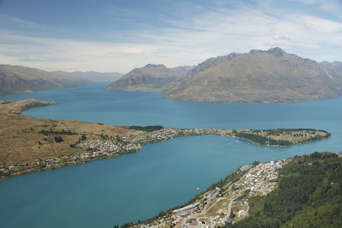 As stated earlier, there is often no easy way to get from point A to point B in New Zealand, especially in the mountainous South Island, so we started at the Blenheim airport in a 20-seater Beechcraft. There was no overhead storage, so my little red bag which had faithfully followed me everywhere was taken into custody and put in the back somewhere. The co-pilot, a lovely young woman, was also our attendant, welcoming us aboard and giving us our instructions, pointing to my red bag on the tarmac when we exited an hour later. There was not a door between passengers and cockpit and we could lean into the aisle and watch ourselves land at Christchurch, our intermediate stop before transferring planes and going across the ranges to Queenstown on the west coast.