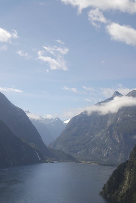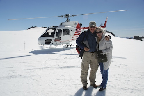 The day of our helicopter adventure began sunny and clear. We were scheduled for a midmorning flight which was to include a set-down on a glacier, a cruise of Milford Sound and lunch.
