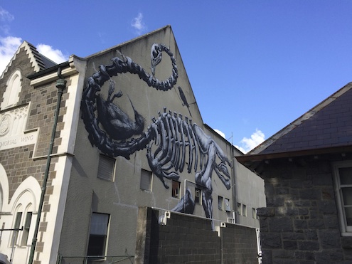 Put us in front of a museum and our feet just go through the front door. The Canterbury Museum was just a few blocks from the hotel. We learned a bit more about the Maori culture, the extinction of the moa, the early settlement of the South Island and the exploration of Antarctica. Not to mention the special exhibit of street art featuring original works by the British street artist, Banksy, as well as BMD, artists of our cat shipping container in Auckland and the shark wall in Wellington.