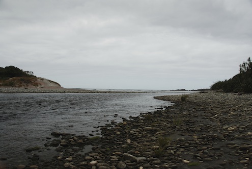 The Tasman Sea “beach” was full of round rocks and pesky little black flies which could really only be seen in the swarms they stayed in. That was a quick stop.