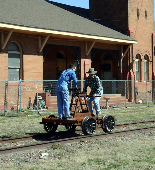 Bonham -- There was a time when handcars were a regular sight rolling along the railroad tracks in Bonham, but it is highly unlikely there was ever a finer example of this historic mode of transportation along the rails than the one Jeff Cooney brought to town Saturday, February 22.