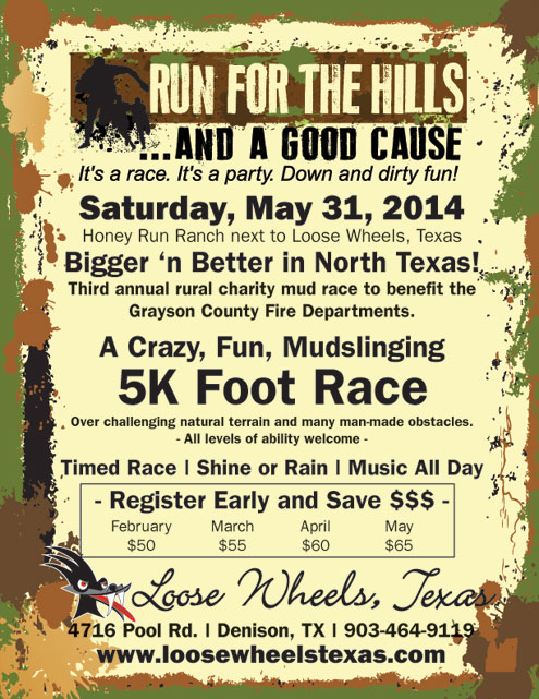 Highlights will include the large ladder truck from the Denison Fire Department which will be used as a public shower for mud racers at the end of the race, live music provided by a showcase of high energy bands, and the high quality food and drink available at Loose Wheels.