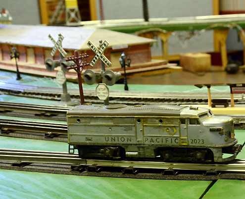 The layout now is basically a rather large toy train layout, but as noted above, we envision it evolving and growing over the years to represent the route of the former Texas & Pacific line between Bonham and Honey Grove, with miniature models of real buildings in the two towns. If you would like to join in the effort to make the layout grow, be sure to leave your name and number with somebody at the layout! Or if you just have some trains you’d like to see run, bring them by and take a turn at the throttle!