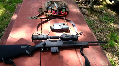 When I recovered from the shot and settled the Photon XT back on the spot where the hog was standing, I could make out his outline, lying right where he was standing. This was the fifth hog I’ve taken from this area with the same rifle topped with the Photon. This was my first time to have the convenience of using a quality monocular and I don’t plan to do any more night hunting without it.