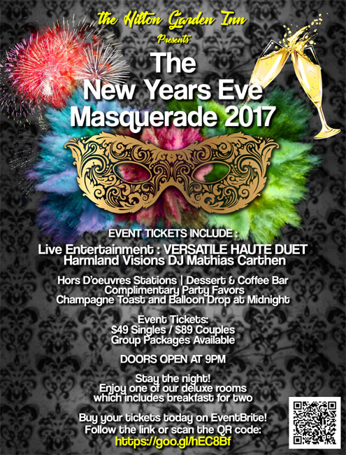 Denison -- It's time to make plans for New Years Eve and The Hilton Garden Inn is excited to present The New Years Eve Masquerade 2017!