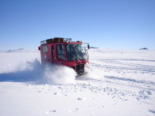 Crevasses are highly unlikely in this thick, slow-moving region of the Antarctic ice sheet, she said. The campaign’s deep field mountaineer will operate a ground penetrating radar that sticks out on a boom in front of the lead vehicle, looking for any gaps in the ice, but the primary safety concerns will be exposure to outside temperatures (-20s Fahrenheit) and the altitude (about 10,000 feet, or 3,048 meters, at South Pole).