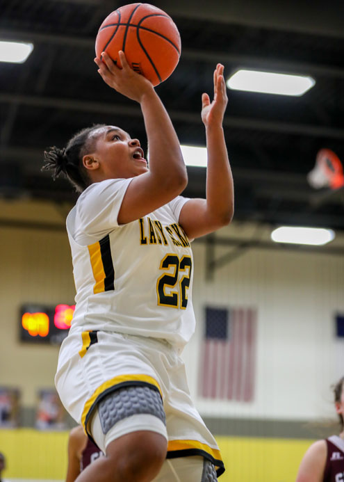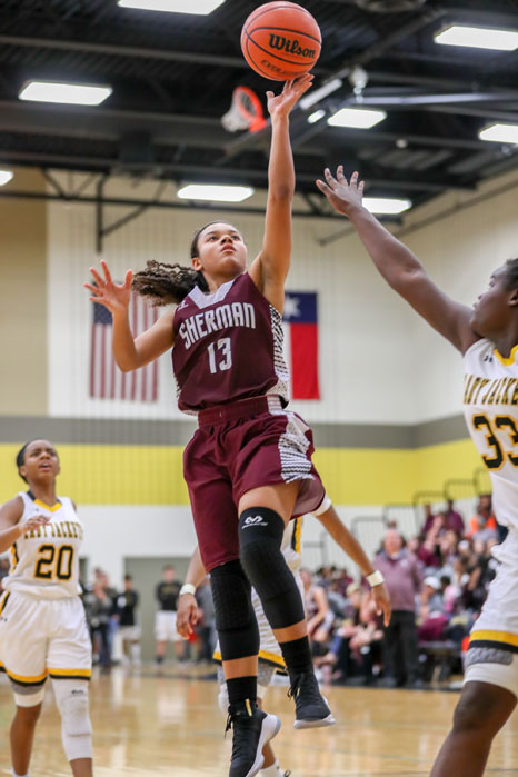 Sherman High School's Jaylen Edmonson scores a lay-up.