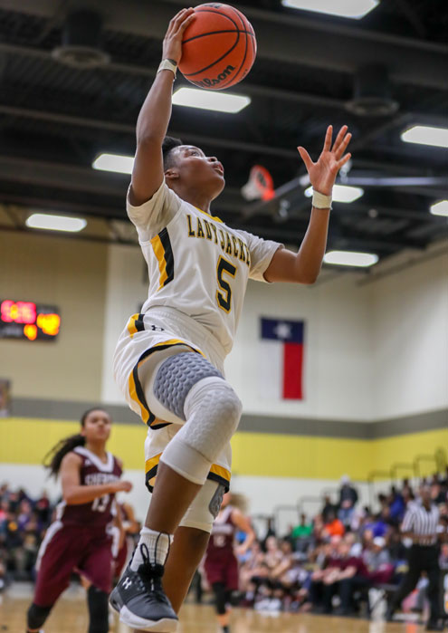 Sherman High School's Jaylen Cleamons soars to the bucket.