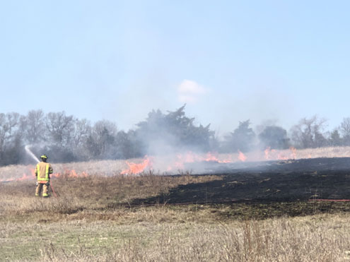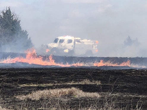 McKinney, Texas (March 20, 2018) – The McKinney Fire Department (MFD) received several calls about a brush fire at Erwin Park, 4300 Country Road 1006. Crews arrived to find one to two acres on fire in the area around a pavilion. Visitors to the park were evacuated as a precaution. The department’s new Brush Truck 4 and additional MFD fire apparatus were used along with help from a neighboring city which was called in to help contain the fire.